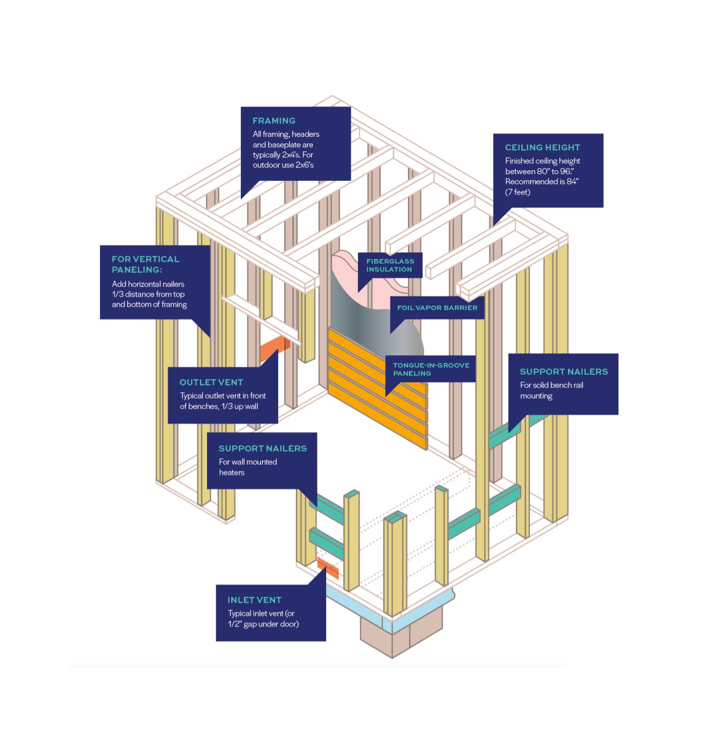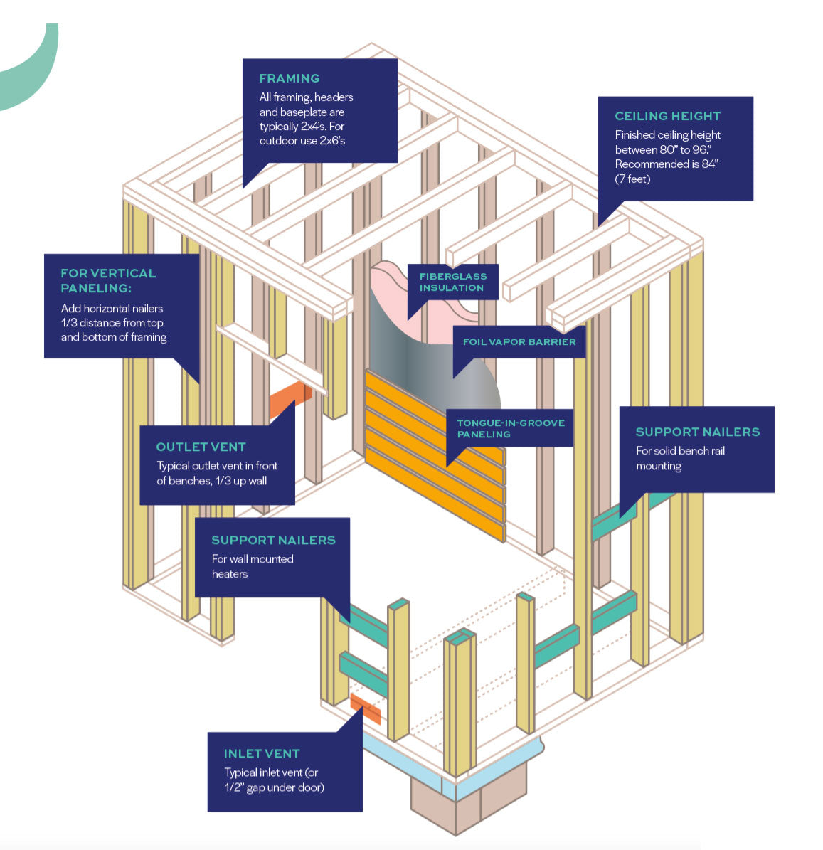 Nails & Finishing: Stainless Steel finishing nails for easy paneling install, fits finish nailer guns, will never corrode or leave stains on sauna walls