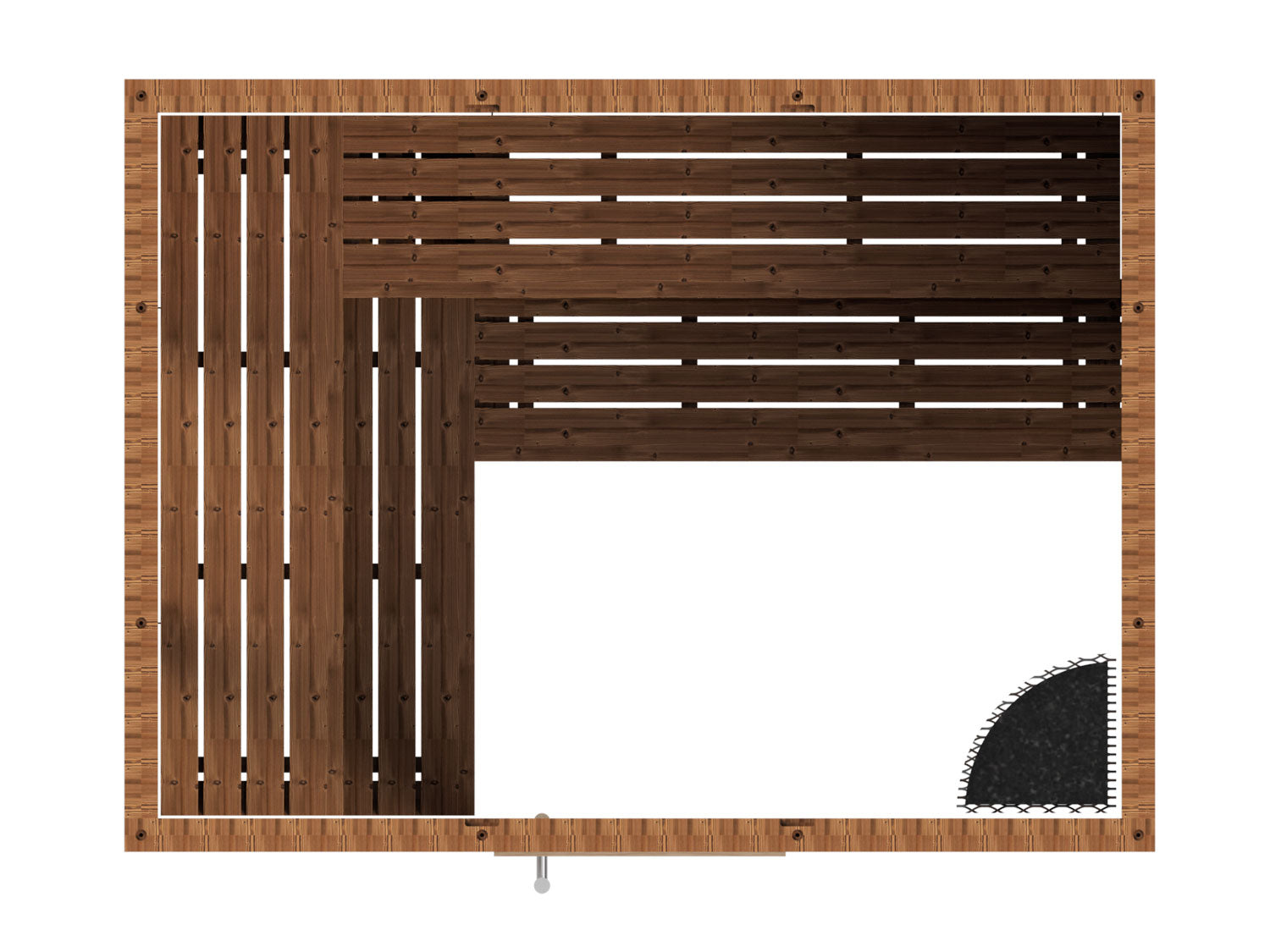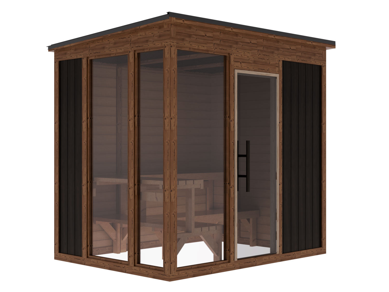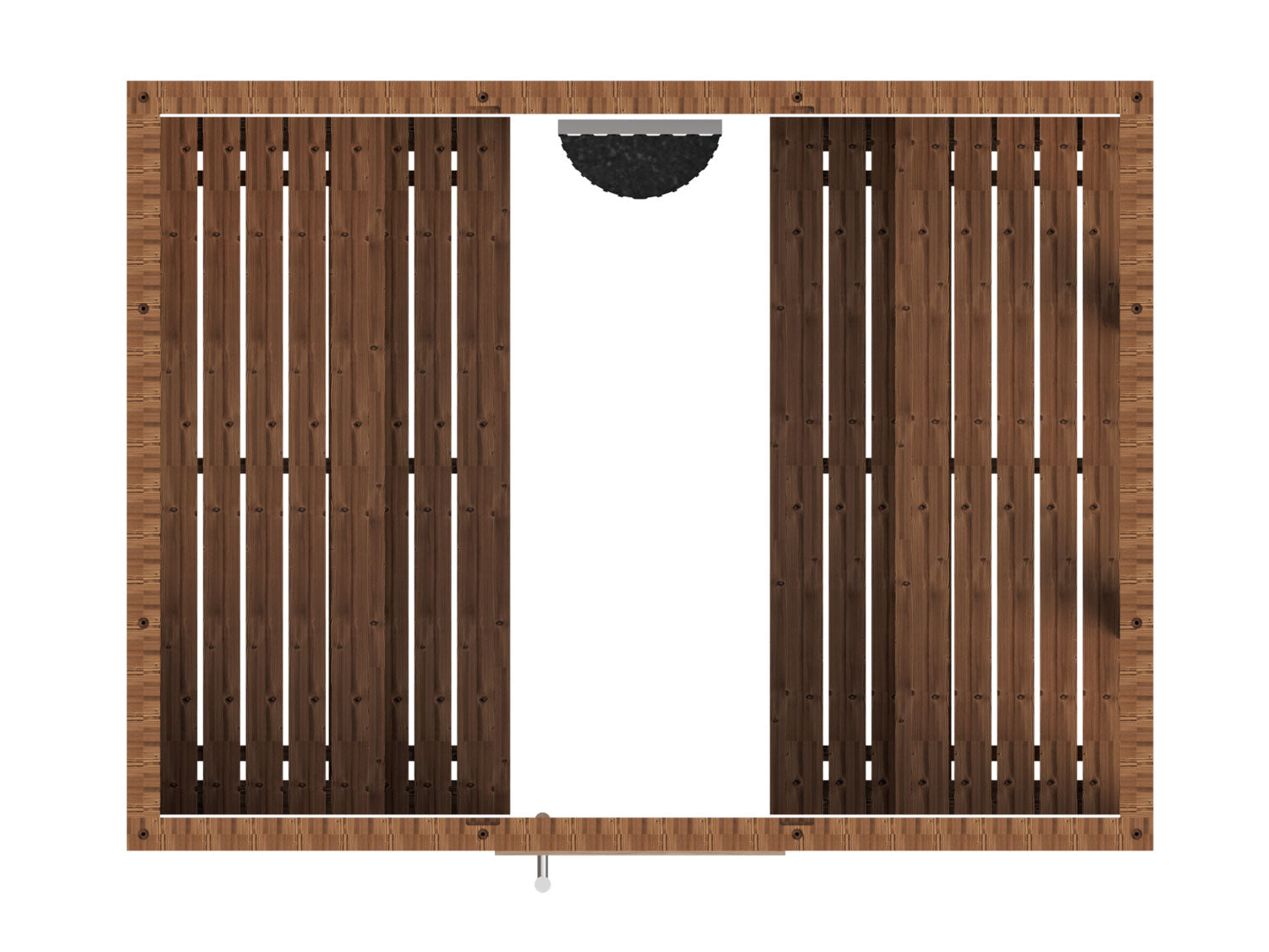 The Mod6 comes in 2 layouts which fits 6 people comfortably. Social is our L benching which is great for hosting or a large family. Our Athletic layout has parallel benching that folds up and out of the way for your at home heated yoga practice.