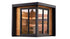 The Patio S has two glass walls that enhance the sense of openness and natural light. This model combines modern design with functionality, offering an L-shaped bench that comfortably seats 4 people. Ideal for those who value both style and outdoor views in their sauna experience.
