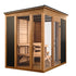 The Modern Social Mod6 Sauna Kit features a spacious social layout with L-shaped benching and designer Cariitti 6-Spot Glass Fiber Lighting. It seats 6–8 people comfortably and enjoy a powerful IKI 9kw Corner heater (when selected from the dropdown).