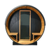 4-person, premium-quality DIY Barrel Sauna Kit with front porch and panoramic window. Tall enough to stand in comfortably, this is the largest, most spacious barrel sauna available. Natural light from the glass door and panoramic window illuminates this beautiful space. Includes a front porch with comfortable benches for added convenience. Quality materials and superb engineering make this the very best outdoor sauna.