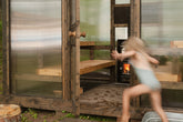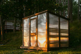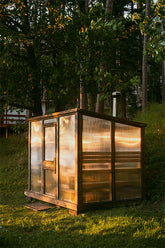 Allison C.We built the Soluna Trio at our lake home this summer. The kit is well-designed and comes together perfectly. Attention to detail is obvious in the overall product. It is beautiful, allowing ample light to enter yet maintaining privacy. With the wood-burning sauna stove it heats quickly and efficiently (especially on sunny days where the sunlight simply pre-warms it!). Seating is comfortable for 8 and the 2 levels allow everyone to experience different heat if desired. The benefits of sauna are numerous, but the time with family is precious-our sauna encourages relaxation, conversation and togetherness. The day is not complete without a sauna followed by a dip in the lake (repeat of course!).